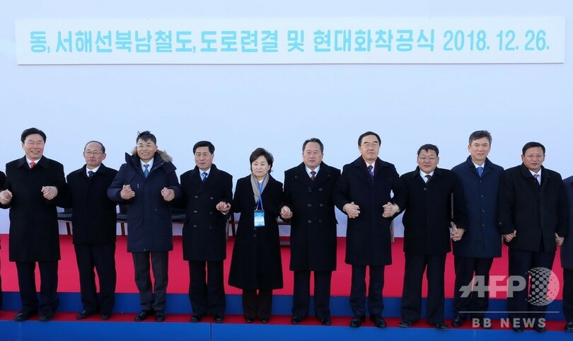 【12月26日 AFP】韓国と北朝鮮は26日、南北をつなぐ鉄道と道路の再連結・修復事業の着工式を行った。