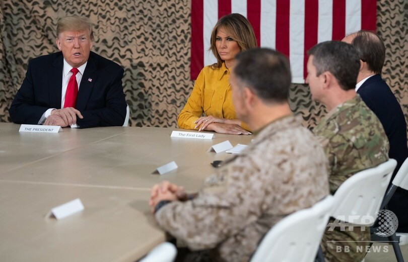 米政府では2001年9月11日の米同時多発攻撃以降、海外駐留部隊の激励を目的とした訪問は歴代大統領の慣例となっているが、これまで戦地訪問を行っていなかったトランプ氏は大きな批判を浴びていた。(c)AFP