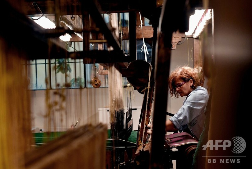 またローマカトリック教会のフランシスコ法王(Pope Francis)をはじめ、オペラ歌手マリア・カラス(Maria Callas)やテノール歌手のアンドレア・ボチェッリ(Andrea Bocelli)も、この伝統ある織り機で生み出された服を着用したことがあるという。(c)AFP