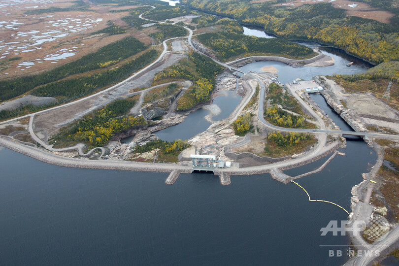 ケベック州では1970年代から、供給電力の9割を水力発電が占めてきた。2021年にフル運用が始まると、4基の発電所は計1550メガワットの電力を発電する。一つの市、もしくは供給予定である150万の家庭に送電するには十分な電力量だ。(c)AFP/Clément SABOURIN