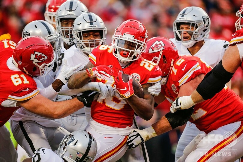 【12月31日 AFP】18NFLは30日、第17週の試合が行われ、カンザスシティ・チーフス(Kansas City Chiefs)が35-3でオークランド・レイダース(Oakland Raiders)を一蹴し、アメリカン・カンファレンス(AFC)のトップシードを獲得した。