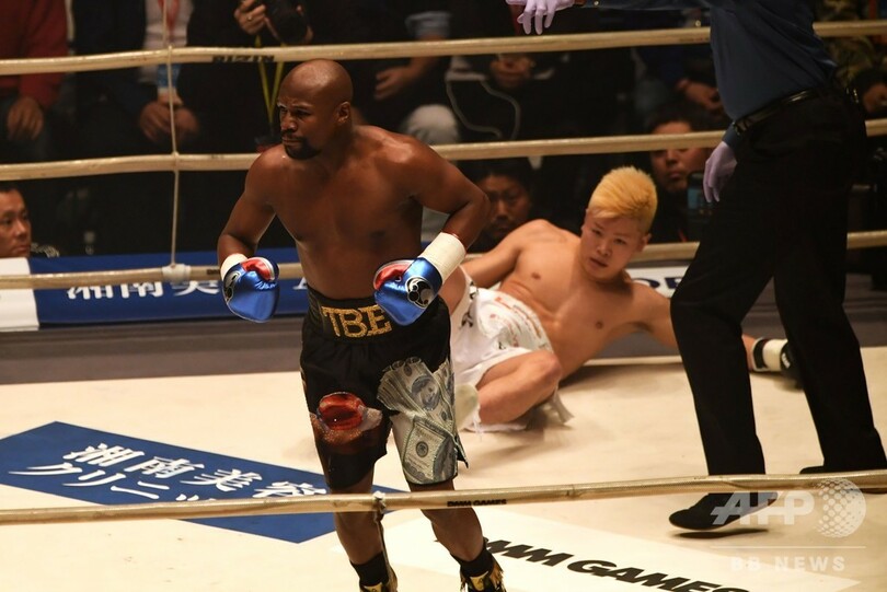 【1月1日 AFP】格闘技イベント「RIZIN.14」が31日、埼玉で行われ、エキシビションマッチでボクシングの元世界王者フロイド・メイウェザー・ジュニア(Floyd Mayweather Jr.、米国)が、キックボクサーの那須川天心(Tenshin Nasukawa)からTKO勝ちを収めた。