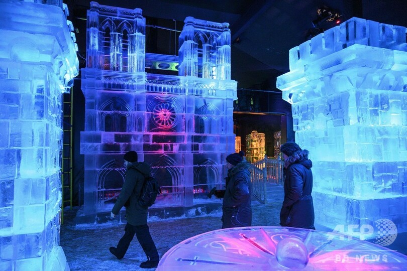 世界の名所や名画が氷像に、氷の滑り台も モスクワ