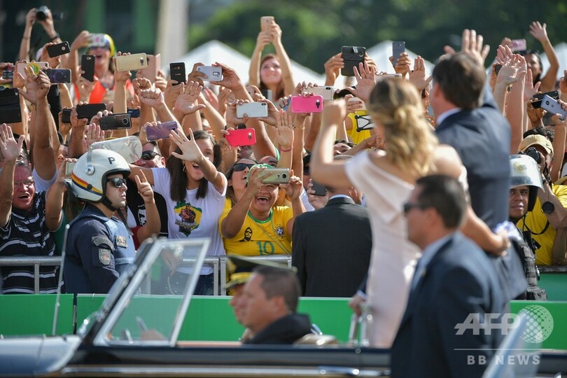 そのトランプ氏は1日、ツイッター(Twitter)で早速ボルソナロ氏の大統領就任に祝意を表し、「米国はあなたと共にある!」と書き込んだ。ボルソナロ氏もこれに返信し、謝意を伝えた。(c)AFP/Louis GENOT, with Marc BURLEIGH in Rio de Janeiro