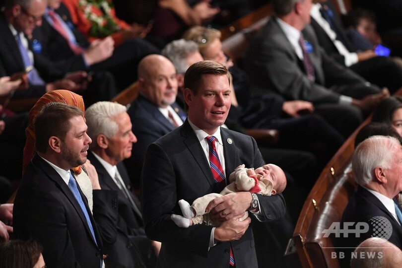 ベテラン共和党議員の隣に座った男の子が、議事進行用の小づちで自分の顔をぺちぺちとたたいているかと思えば、民主党の男性議員が抱いてあやしていた生後2か月の赤ちゃんが目を覚まして泣き出す一幕も。
