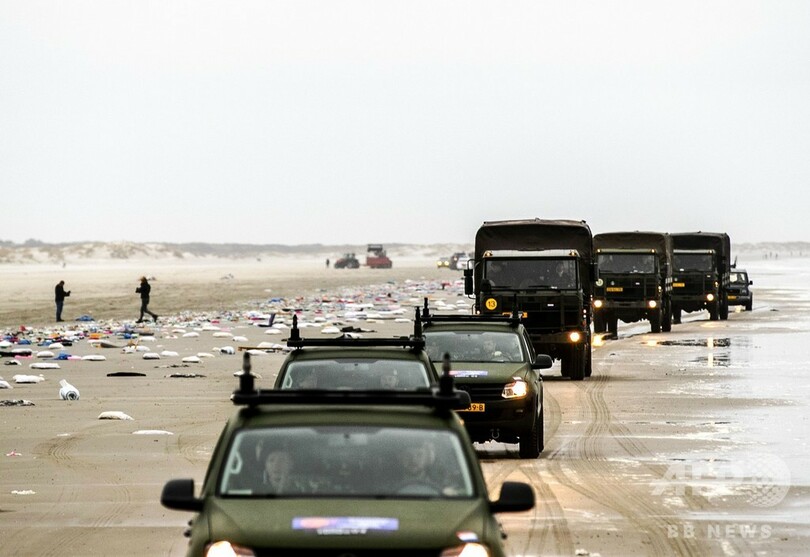 オランダ国防省は地元自治体からの要請を受けて、4日に軍を派遣し、海岸に散乱している漂着物の回収作業を支援すると発表した。(c)AFP