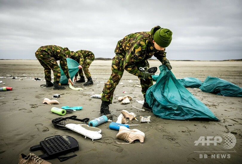 オランダ国防省は地元自治体からの要請を受けて、4日に軍を派遣し、海岸に散乱している漂着物の回収作業を支援すると発表した。(c)AFP