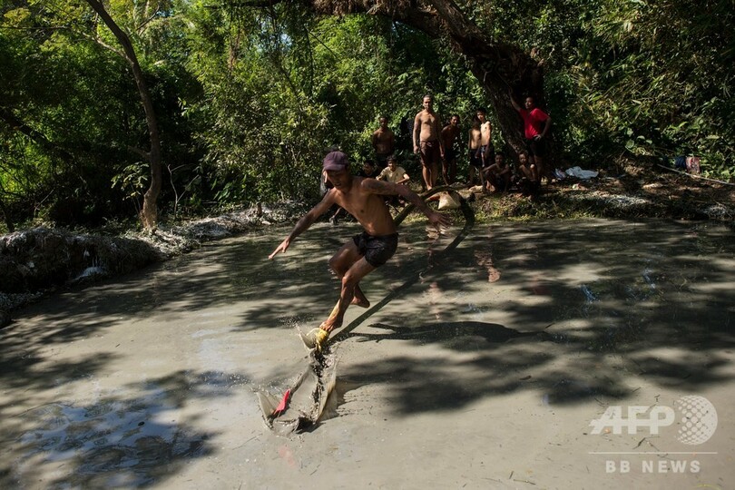 ミャンマーで独立記念日祝う運動会、哺乳瓶吸い競争や棒渡りなど