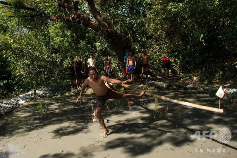 ミャンマーで独立記念日祝う運動会、哺乳瓶吸い競争や棒渡りなど