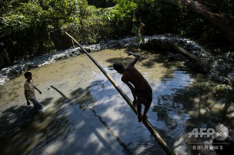 ミャンマーで独立記念日祝う運動会、哺乳瓶吸い競争や棒渡りなど