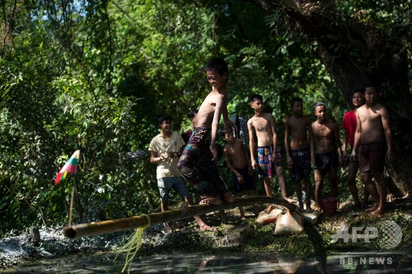 ミャンマーで独立記念日祝う運動会、哺乳瓶吸い競争や棒渡りなど