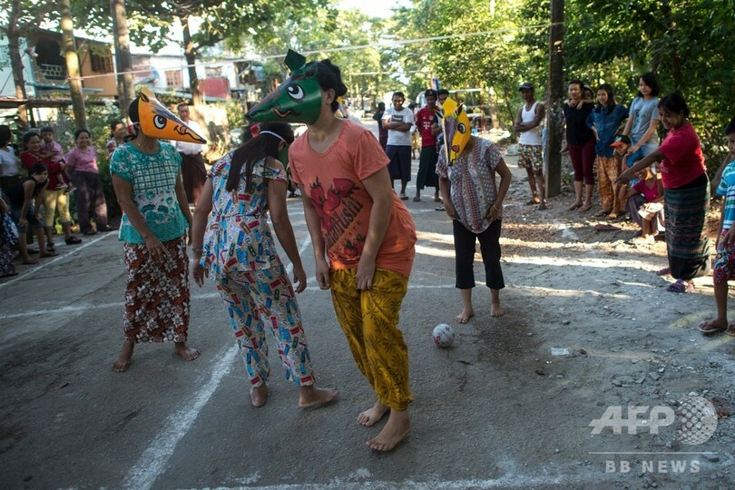 ミャンマーで独立記念日祝う運動会、哺乳瓶吸い競争や棒渡りなど