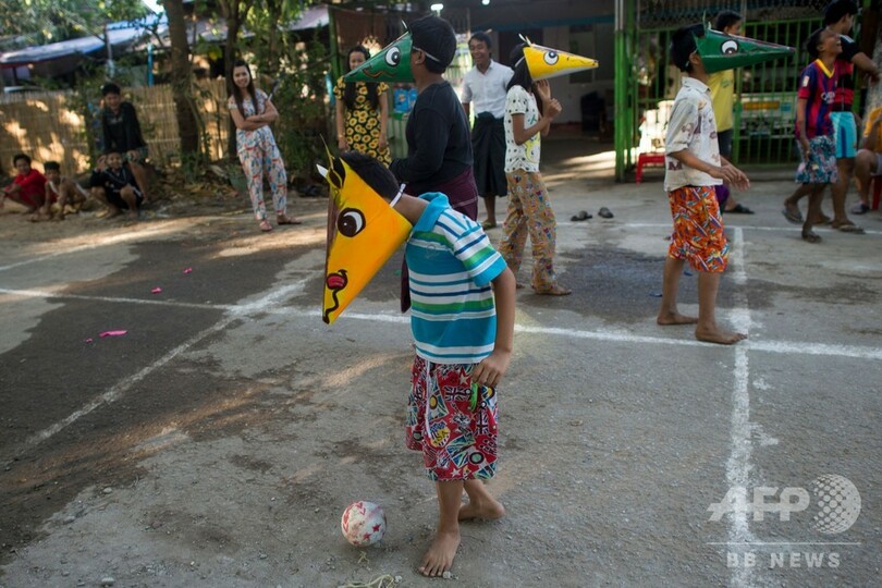 ミャンマーで独立記念日祝う運動会、哺乳瓶吸い競争や棒渡りなど