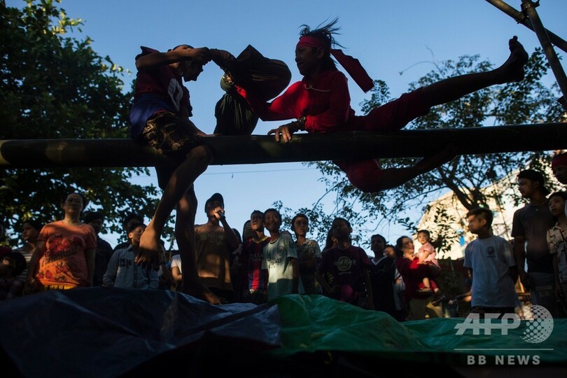 ミャンマーで独立記念日祝う運動会、哺乳瓶吸い競争や棒渡りなど