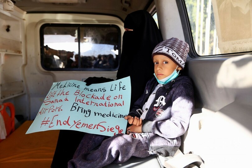 フーシ派によると、空港封鎖のために、大勢の患者が外国での治療を受けられずにいるという。(c)AFP/Jamil Nasser