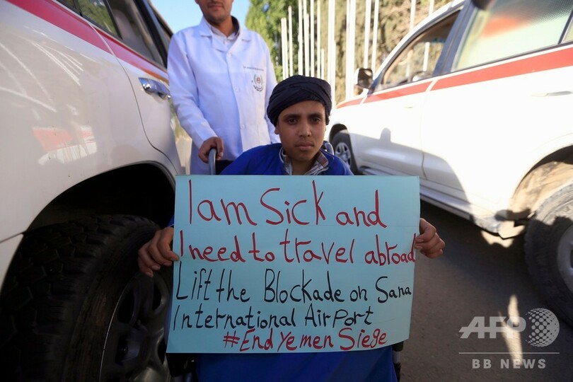フーシ派によると、空港封鎖のために、大勢の患者が外国での治療を受けられずにいるという。(c)AFP/Jamil Nasser