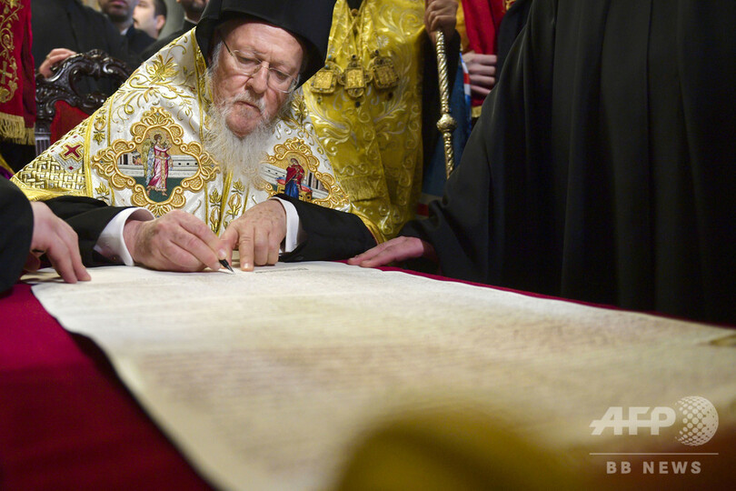 【1月6日 AFP】キリスト教東方正教会で最も高い権威を持つコンスタンチノープル総主教庁(トルコ・イスタンブール)の総主教バルトロメオス1世(Bartholomew I)は5日、ウクライナ正教会の独立を認める文書に署名した。独立に反対していたロシア正教会と決別することになる。