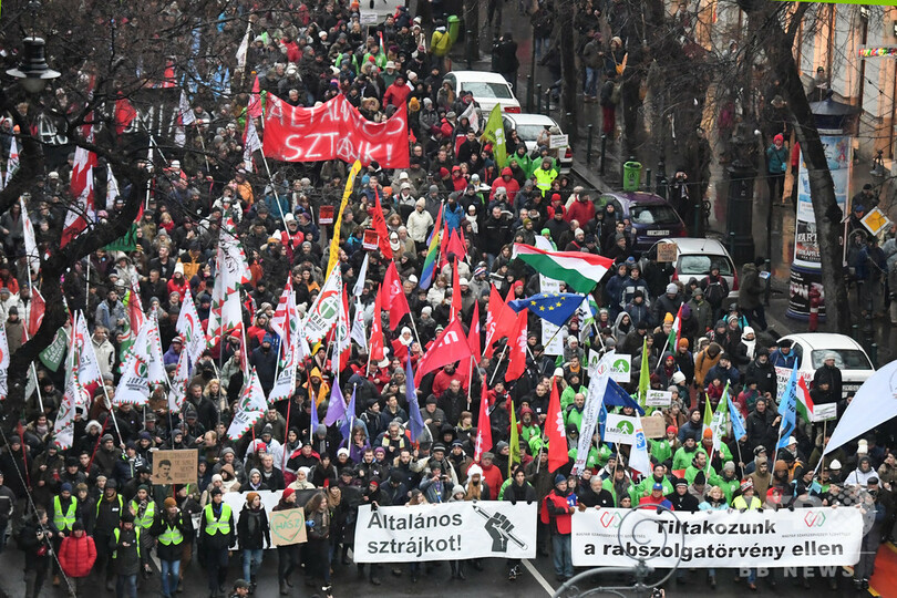 ハンガリーの「奴隷法」抗議デモ、年明け後初開催で6000人参加
