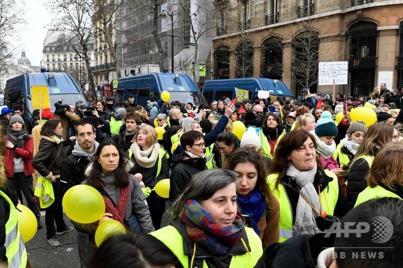 【1月7日 AFP】燃料税引き上げへの抗議を発端に8週目に突入した「ジレ・ジョーヌ(黄色いベスト、gilets jaunes)」運動の暴徒化に揺れるフランスで、女性たちが6日、暴力的な活動家から本来の平和なデモを取り戻そうと訴えてパリ市内を行進した。