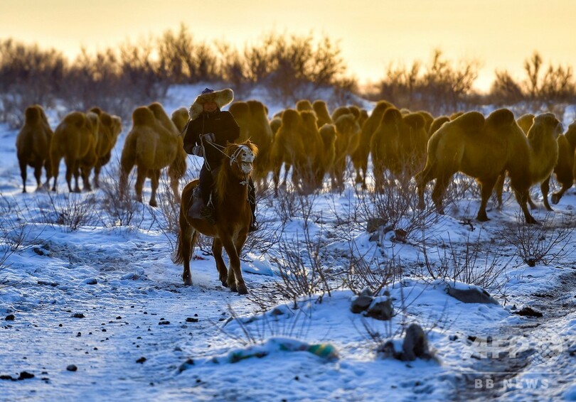 福海県全体で飼育されるラクダの数は2018年末時点で1万9000頭に達し、関連の繁殖農家は2200世帯に上る。ラクダの飼育は現地遊牧民にとって貧困脱却への重要な手段の一つになっている。(c)CNS/JCM/AFPBB News