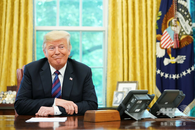 ホワイトハウスで、メキシコのエンリケ・ぺニャニエト大統領と電話で話すドナルド・トランプ大統領(2018年8月27日撮影)。(c)AFP PHOTO / MANDEL NGAN