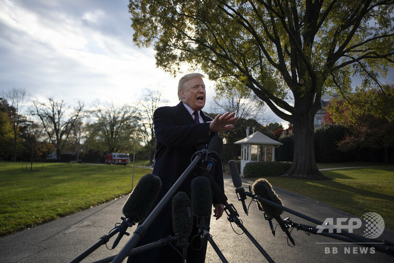 フロリダ州パームビーチに所有する高級リゾート施設「マーアーラゴ」に向かう前、報道陣に向かって話すドナルド・トランプ大統領(2018年11月20日撮影)。(c)Jim WATSON / AFP