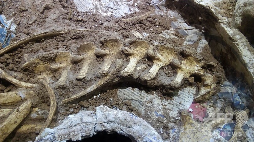 今後、化石の年代を特定するための検査が実施される予定。この種の動物は約250万年前から1万2000年前まで続いた更新世に生息していた。(c)AFP