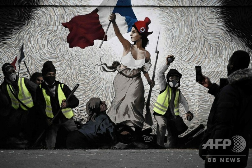 黄色いベストが名画とコラボ? 仏パリに壁画登場