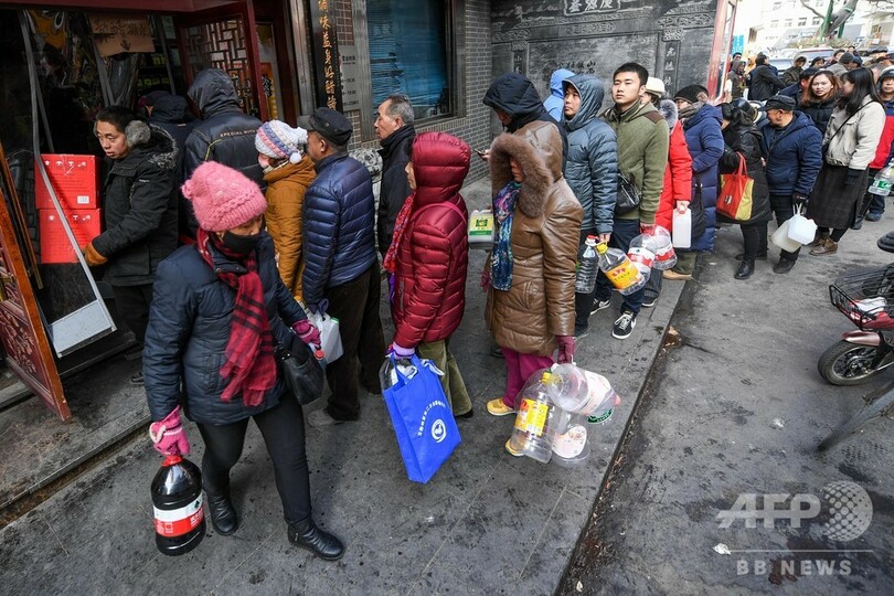 【1月12日 CNS】春節(旧正月、Lunar New Year)を間近に控え、中国・山西省(Shanxi)太原市(Taiyuan)では、同省の名産品である調味料の老陳醋(Laochencu、黒酢)の販売がピークを迎えている。連休前に備蓄しようと、地元市民は自宅から持参した空き容器を携え、店の前で長蛇の列を作っていた。(c)CNS/JCM/AFPBB News