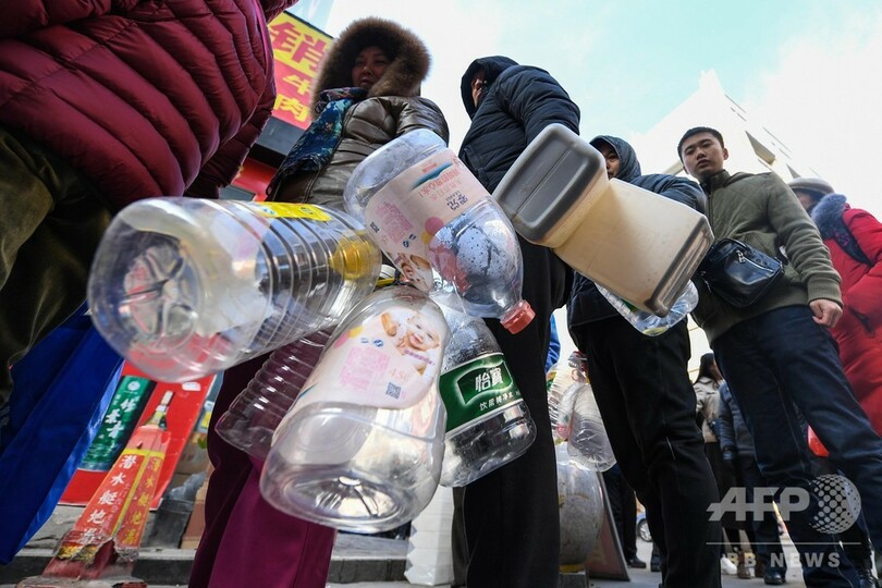 【1月12日 CNS】春節(旧正月、Lunar New Year)を間近に控え、中国・山西省(Shanxi)太原市(Taiyuan)では、同省の名産品である調味料の老陳醋(Laochencu、黒酢)の販売がピークを迎えている。連休前に備蓄しようと、地元市民は自宅から持参した空き容器を携え、店の前で長蛇の列を作っていた。(c)CNS/JCM/AFPBB News