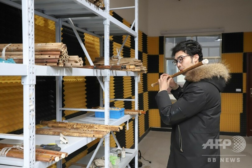 【1月26日 CNS】中国・貴州省(Guizhou)銅仁市(Tongren)玉屏県(Yuping)の伝統楽器「簫笛(Xiaodi)」工房で、笛の職人らが簫笛作りにいそしんでいた。玉屏の簫笛製造技術は中国国務院により国家級の文化遺産として指定を受けている。(c)CNS/JCM/AFPBB News