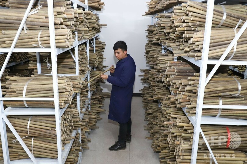 【1月26日 CNS】中国・貴州省(Guizhou)銅仁市(Tongren)玉屏県(Yuping)の伝統楽器「簫笛(Xiaodi)」工房で、笛の職人らが簫笛作りにいそしんでいた。玉屏の簫笛製造技術は中国国務院により国家級の文化遺産として指定を受けている。(c)CNS/JCM/AFPBB News