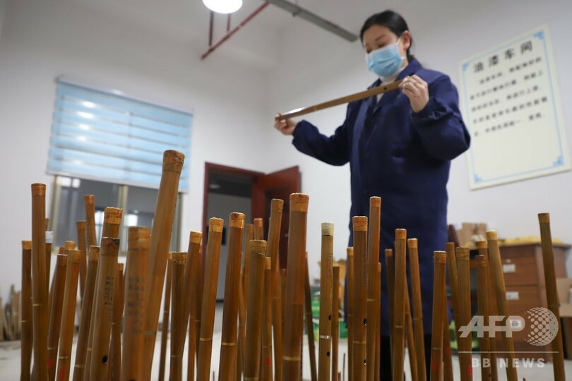 【1月26日 CNS】中国・貴州省(Guizhou)銅仁市(Tongren)玉屏県(Yuping)の伝統楽器「簫笛(Xiaodi)」工房で、笛の職人らが簫笛作りにいそしんでいた。玉屏の簫笛製造技術は中国国務院により国家級の文化遺産として指定を受けている。(c)CNS/JCM/AFPBB News