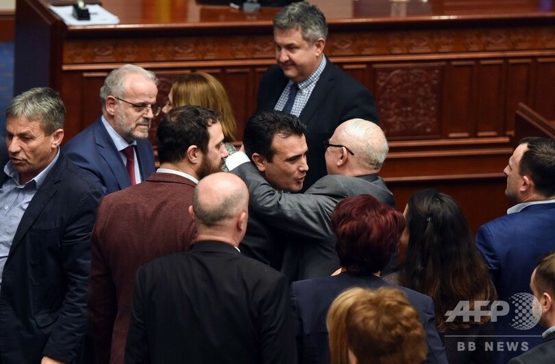 【1月12日 AFP】東欧マケドニアの議会(定数120)は11日、国名を「北マケドニア共和国(North Macedonia)」に変更する改憲の是非を問う採決を行い、承認された。これにより、国名をめぐるギリシャとの数十年に及ぶ確執は解消され、マケドニアは北大西洋条約機構(NATO)と欧州連合(EU)加盟に向けて大きく前進する。