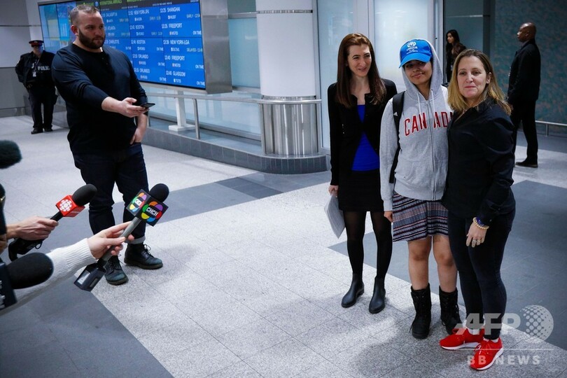 【1月13日 AFP】家族の元からタイへ逃れ、第三国への亡命を申請していたサウジアラビア人女性のラハフ・ムハンマド・クヌン(Rahaf Mohammed al-Qunun)さん(18)が12日、カナダのトロントに到着し、同国当局の温かい歓迎を受けた。