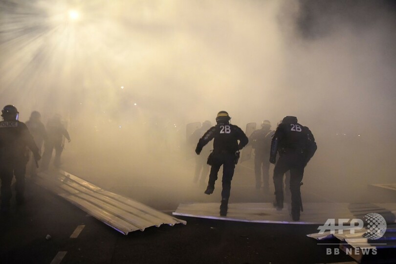 後にパリの凱旋(がいせん)門(Arc de Triomphe)でデモ参加者と治安部隊の小競り合いがあり、治安部隊は厳重な警備態勢が敷かれたシャンゼリゼ(Champs-Elysees)通りにデモ隊が到達しないよう催涙弾や放水車で対応した。