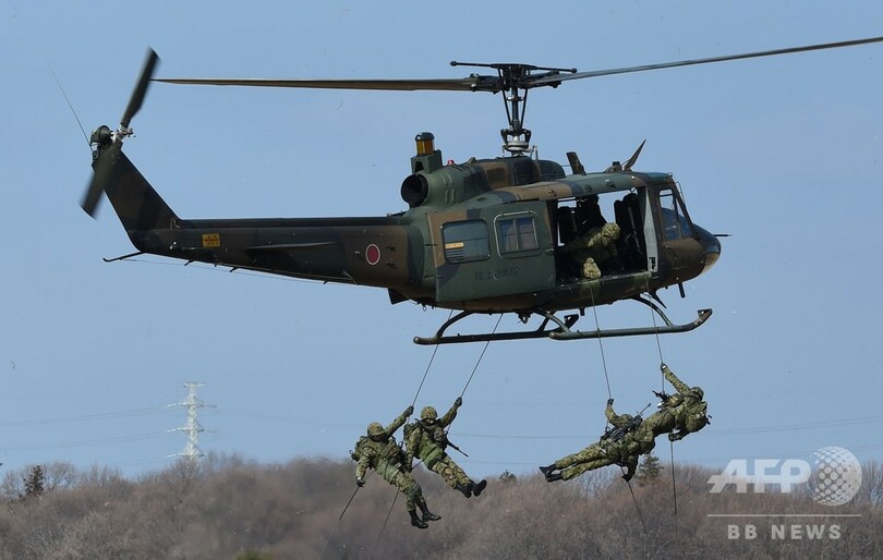 【1月14日 AFP】千葉県の陸上自衛隊習志野演習場で13日、陸上自衛隊の第1空挺団が降下訓練始めを行った。訓練には水陸両用車やヘリコプターが参加し、岩屋毅(Takeshi Iwaya)防衛相も視察に訪れた。(c)AFP