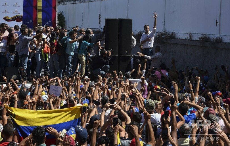 解放された後、大勢の支持者から歓呼の声で迎えられたグアイド氏は、「マドゥロ氏はもはや治安部隊を統制できていない。指揮系統が崩壊しているからだ」と指摘。「今、政権を指揮しているのは誰だ? 国の情報機関が統制下にないと政権が既に認めているならば、(大統領府の)ミラフロレス宮殿(Miraflores Palace)には深刻な問題がある」と述べた。
