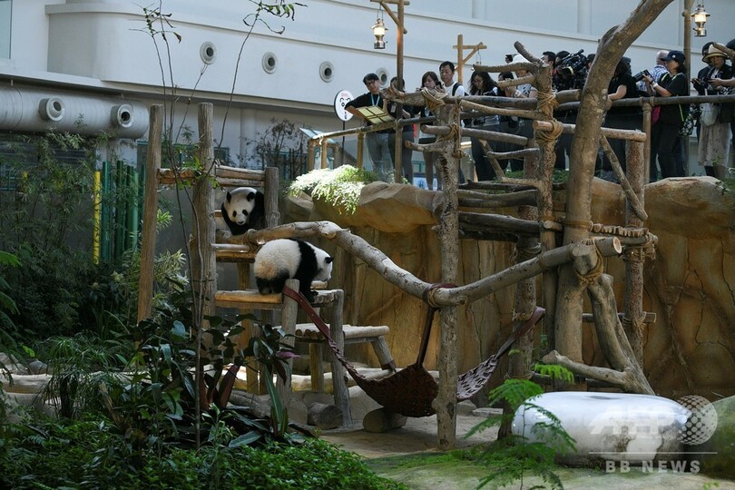 2014年に中国から10年間の予定で貸与された雌のリャンリャン(Liang Liang)と雄のシンシン(Xing Xing)の間に生まれた2頭目の子どもで、現在の体重は34キロだという。(c)AFP