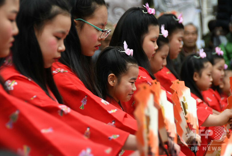 【1月15日 AFPBB News】豊漁・豊作、商売繁盛、家内安全を願って少女たちが舞う伝統行事「チャッキラコ」が1月15日、神奈川県三浦市で行われた。市内在住の5〜12歳の小学生ら25人が、赤や黄色の着物姿で扇をかざしながら、息の合った演舞を見せた。