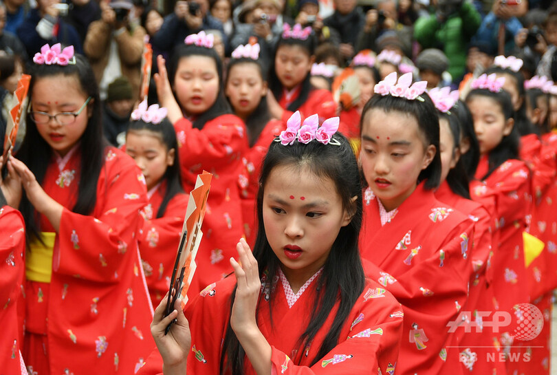 児童らは毎年参加している踊り手が多く、年長の児童が幼い「新入り」の子に教えながら、2週間ほど集中的に練習したという。母娘3代続けて踊り手として参加している同市の石渡亜沙美さん(30)は、「三崎の伝統を守りたいし、その思いを子どもたちにも伝えていきたい」と長女(8)が舞う姿を見守っていた。(c)AFPBB News