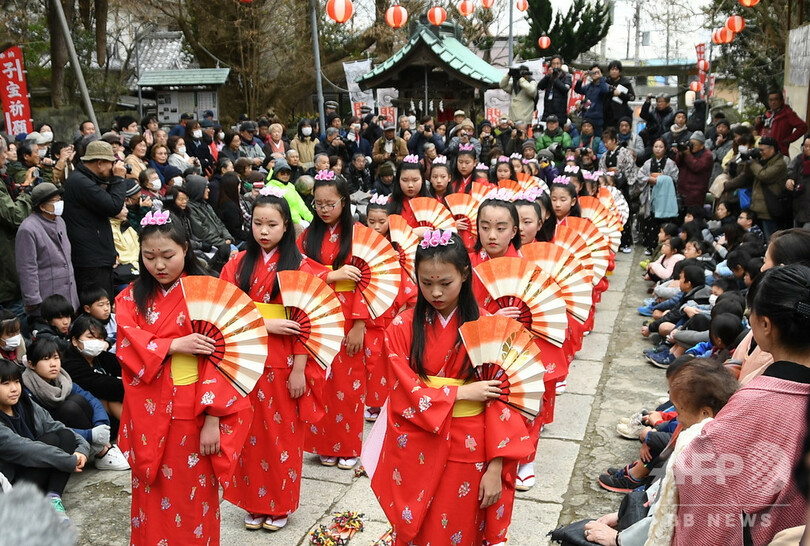 【1月15日 AFPBB News】豊漁・豊作、商売繁盛、家内安全を願って少女たちが舞う伝統行事「チャッキラコ」が1月15日、神奈川県三浦市で行われた。市内在住の5〜12歳の小学生ら25人が、赤や黄色の着物姿で扇をかざしながら、息の合った演舞を見せた。