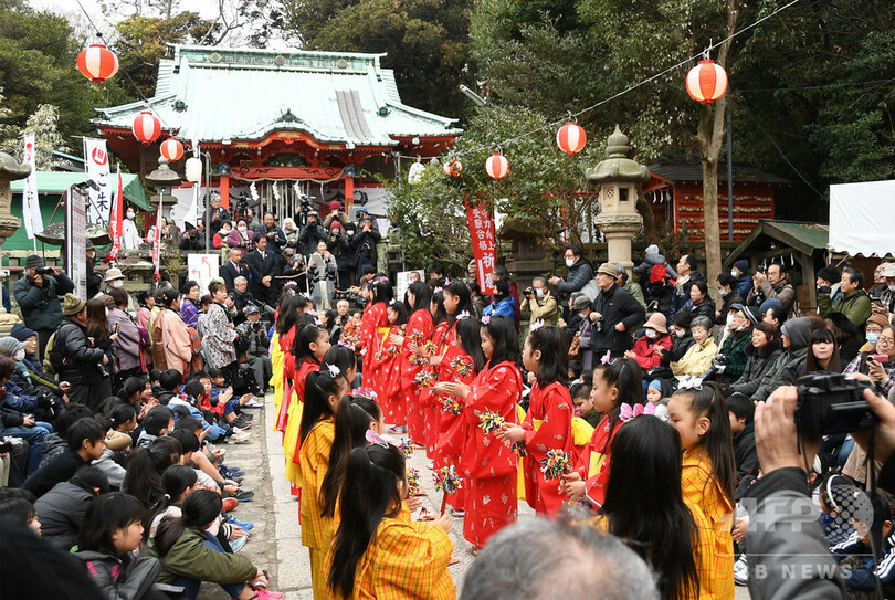 児童らは毎年参加している踊り手が多く、年長の児童が幼い「新入り」の子に教えながら、2週間ほど集中的に練習したという。母娘3代続けて踊り手として参加している同市の石渡亜沙美さん(30)は、「三崎の伝統を守りたいし、その思いを子どもたちにも伝えていきたい」と長女(8)が舞う姿を見守っていた。(c)AFPBB News
