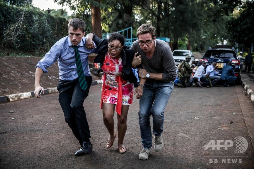 【1月16日 AFP】(写真追加、更新)ケニアの首都ナイロビで15日、高級ホテルやオフィスが入る複合施設が武装集団の襲撃を受けた。施設を包囲した警察の作戦は約20時間続き、同国のウフル・ケニヤッタ(Uhuru Kenyatta)大統領は16日、襲撃により14人が死亡、また武装集団を全員「排除した」と発表した。事件発生後、国際テロ組織アルカイダ(Al-Qaeda)系のイスラム過激派武装勢力「アルシャバーブ(Al-Shabaab)」が犯行声明を出し、米国務省はこの襲撃で米国人1人が死亡したと発表した。