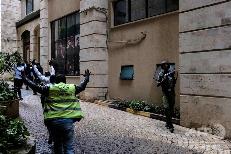 【1月16日 AFP】(写真追加、更新)ケニアの首都ナイロビで15日、高級ホテルやオフィスが入る複合施設が武装集団の襲撃を受けた。施設を包囲した警察の作戦は約20時間続き、同国のウフル・ケニヤッタ(Uhuru Kenyatta)大統領は16日、襲撃により14人が死亡、また武装集団を全員「排除した」と発表した。事件発生後、国際テロ組織アルカイダ(Al-Qaeda)系のイスラム過激派武装勢力「アルシャバーブ(Al-Shabaab)」が犯行声明を出し、米国務省はこの襲撃で米国人1人が死亡したと発表した。