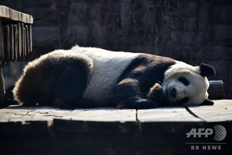 パンダのあられもない寝姿に、来場者はくぎ付けになっていた。(c)CNS/JCM/AFPBB News