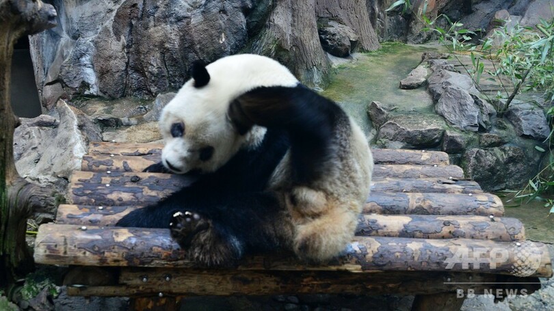パンダのあられもない寝姿に、来場者はくぎ付けになっていた。(c)CNS/JCM/AFPBB News