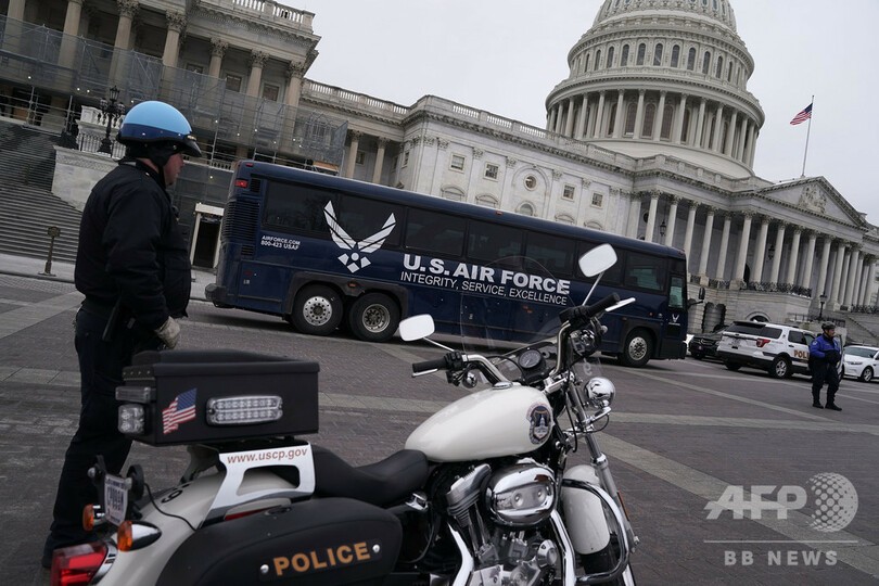 【1月21日 AFP】米首都ワシントンの連邦議会議事堂(Capitol Hill)の外で停車中の、空っぽの米空軍バス。バスは、北大西洋条約機構(NATO)との会合のためベルギー・ブリュッセルに立ち寄った後、アフガニスタンの駐留米軍を視察する予定だった米民主党のナンシー・ペロシ(Nancy Pelosi)下院議長ら訪問団を、アンドルーズ空軍基地(Joint Base Andrews)に運ぶはずだった。ドナルド・トランプ(Donald Trump)米大統領は、これら訪問団の派遣を延期することを決めた。(c)AFP
