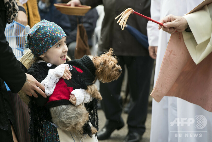 【1月19日 AFP】動物の守護聖人とされる「聖アントニオ(San Antonio Abad)」の日を迎えた17日、スペイン・バレアレス諸島(Balearic Islands)のマヨルカ(Majorca)島ムロ(Muro)では、犬や馬、羊などの動物が聖職者により祝福を受けた。(c)AFP