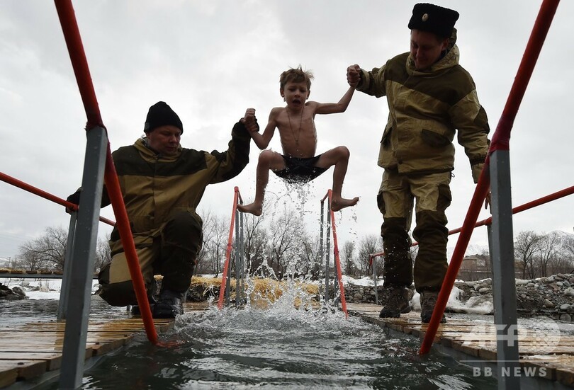 【1月21日 AFP】ロシアやセルビア、中央アジアのキルギスなど各地で19日、キリストの誕生を祝う公現祭(Epiphany)が行われ、氷のように冷たい川や湖に入る信者たちの姿が見られた。正教会の聖職者が川や湖に投げ入れた十字架を手にした人は、その1年を健康に過ごせると言い伝えられている。(c)AFP